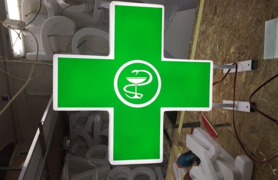 Рекламно-производственная компания "Фасад Медиа Групп" занимается изготовлением аптечные кресты «под ключ»:
