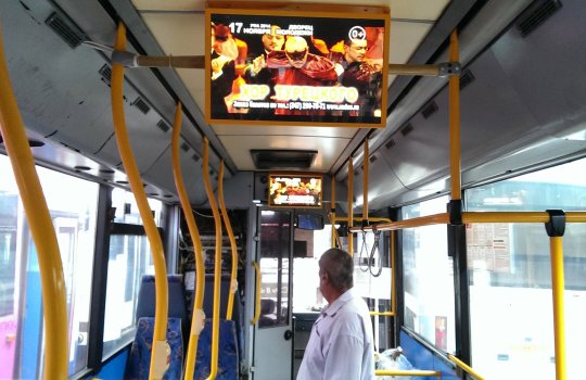 Пример рекламы на мониторе на автовокзале: